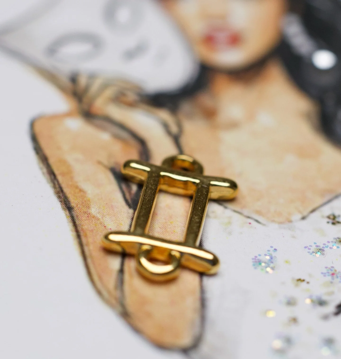 Each artwork is displayed in a white shadowbox frame, thoughtfully chosen to complement the sparkle and dimension of every piece. The 5x7 art print is elevated behind glass, allowing space for hand-placed embellishments — from glitter and pearls to miniature gems and textured fillers — to come to life in three dimensions.